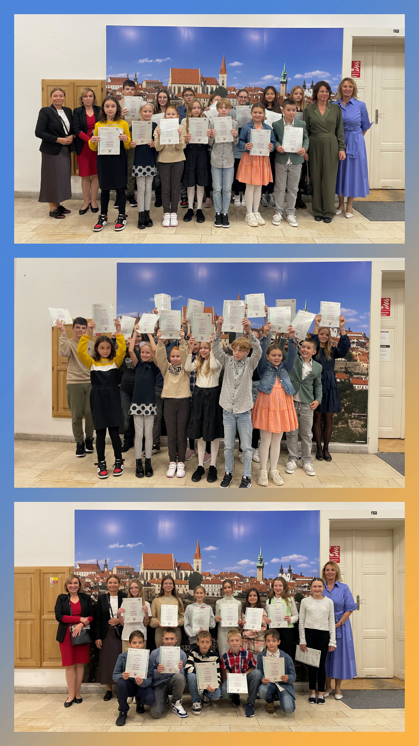 Předávání certifikátů proběhlo ve slavnostní atmosféře v obřadní síni MěÚ Znojmo za účasti paní ředitelky, učitelů kroužků Cambridge a rodičů.
