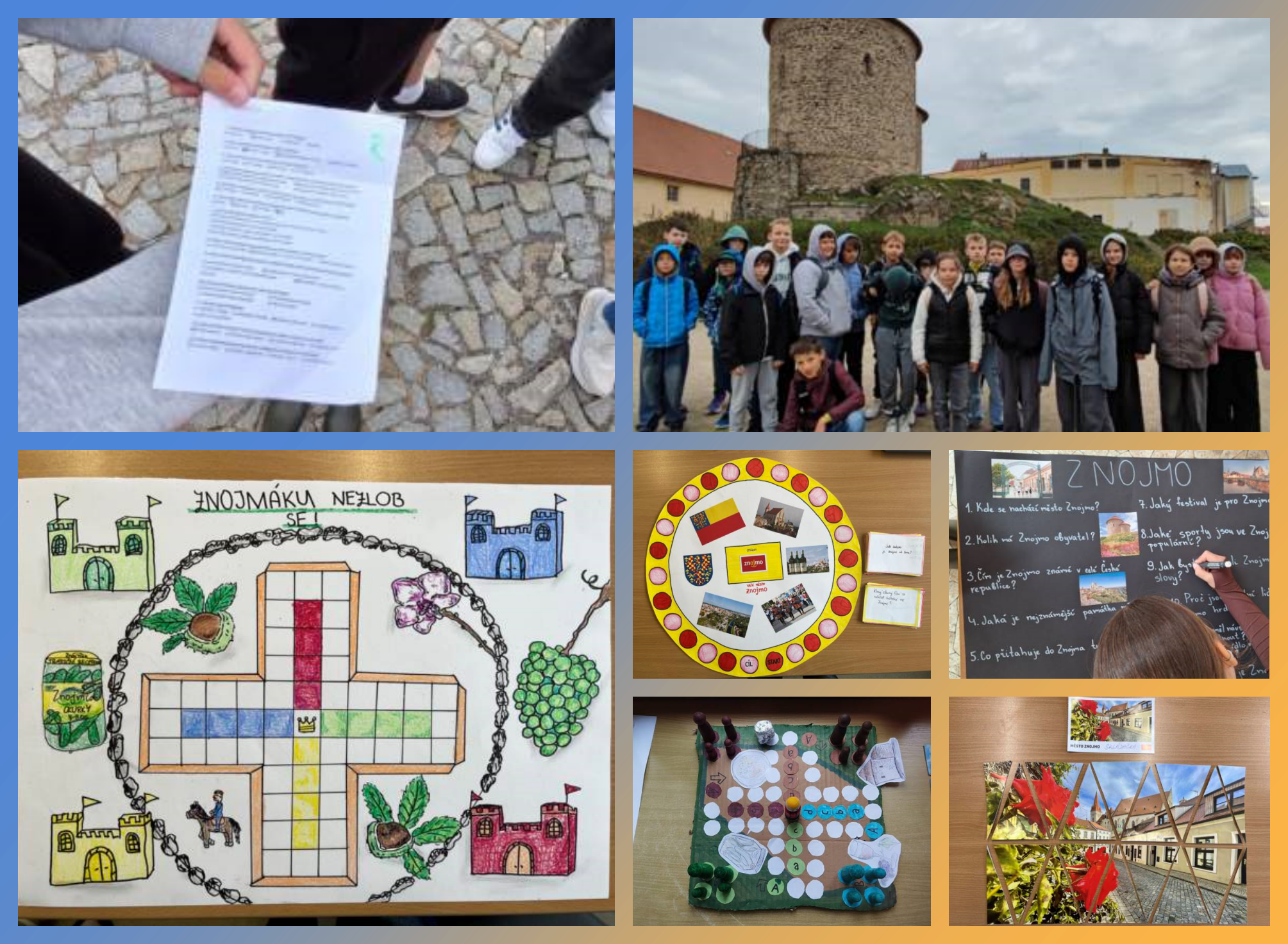Ve druhé části projektového dne vyráběli ve třídách různé kvízy, stolní hry, pexesa, bingo …. vše o městě Znojmě. Vznikly tak originální a jedinečné hry, např. „Znojmáku, nezlob se!, Znojemský AZ kvíz, Znojemské activity, Okurkový bowling, Znojmopoly, Znojemské dostihy a sázky, Otázky s okurkou, Mišmaš Znojmo, Znojemský černý Petr a další.“ Hry budou dále využity v hodinách dějepisu, občanské výchovy nebo na třídnických hodinách.