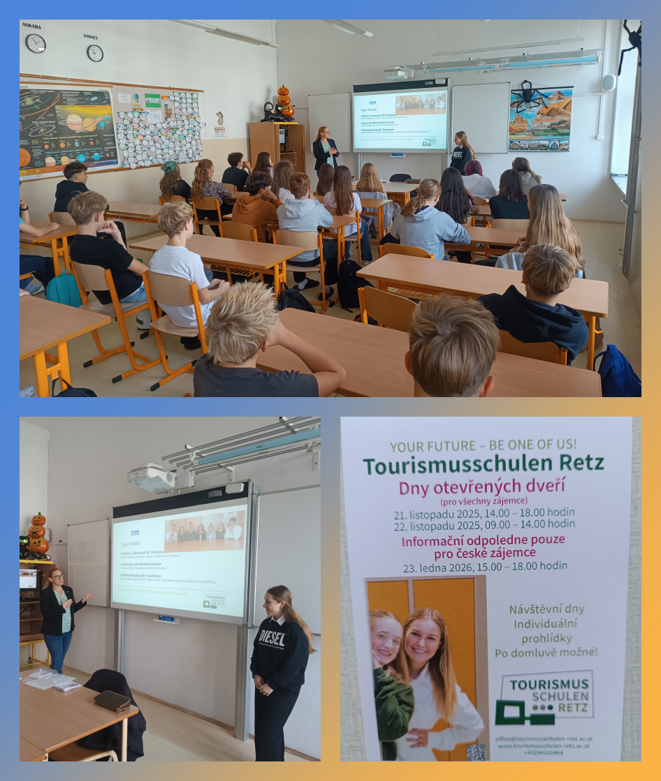 Beseda se zástupci Střední školy hotelnictví a cestovního ruchu v Retzu se na naší škole uskutečnila v pátek 31. 10. 2025.