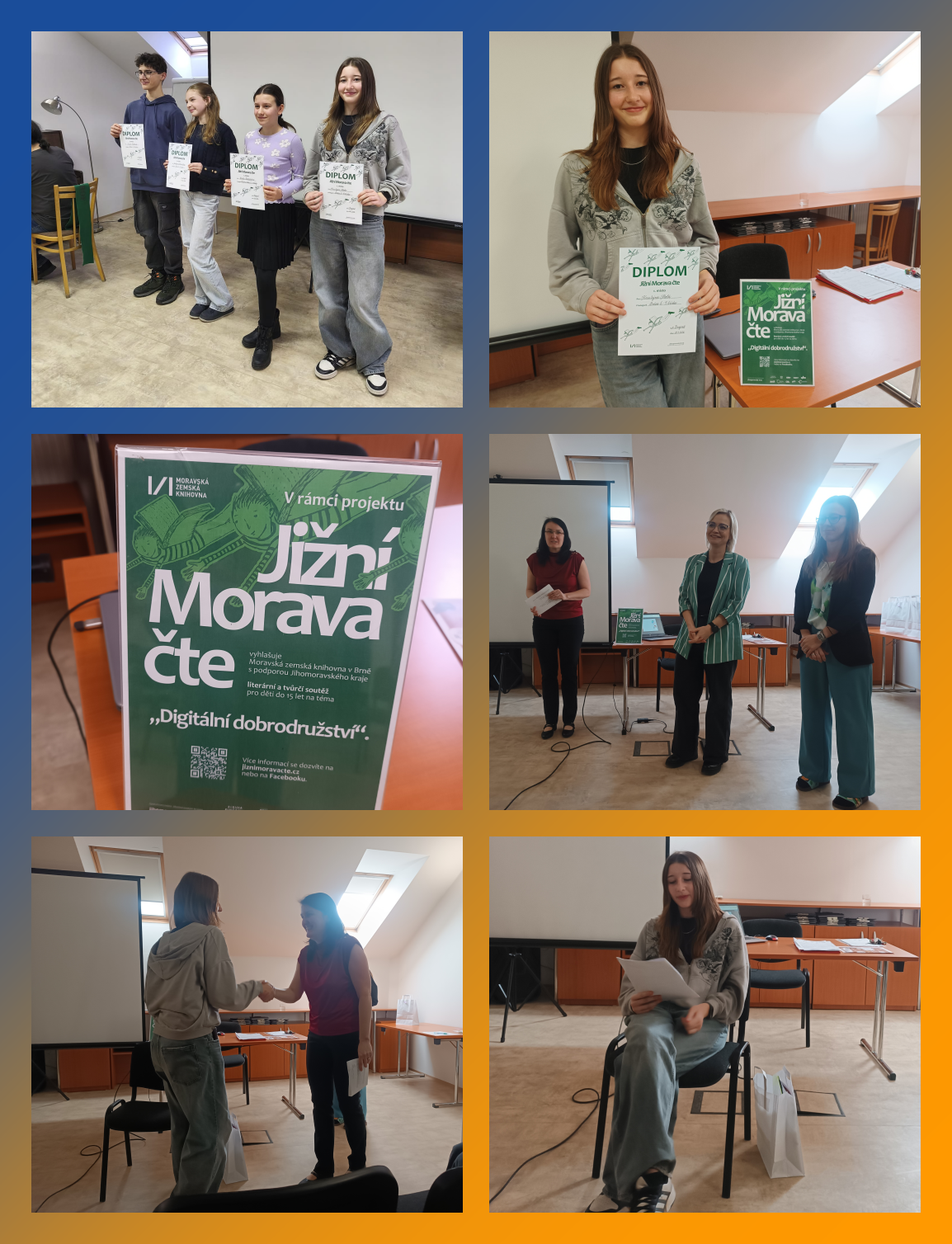 Kristýna ve středu 21. 1. 2026 v sále Městské knihovny Znojmo slavnostně převzala svoji cenu a na celý sál svoji práci, která postupuje do dalšího kola, přečetla.