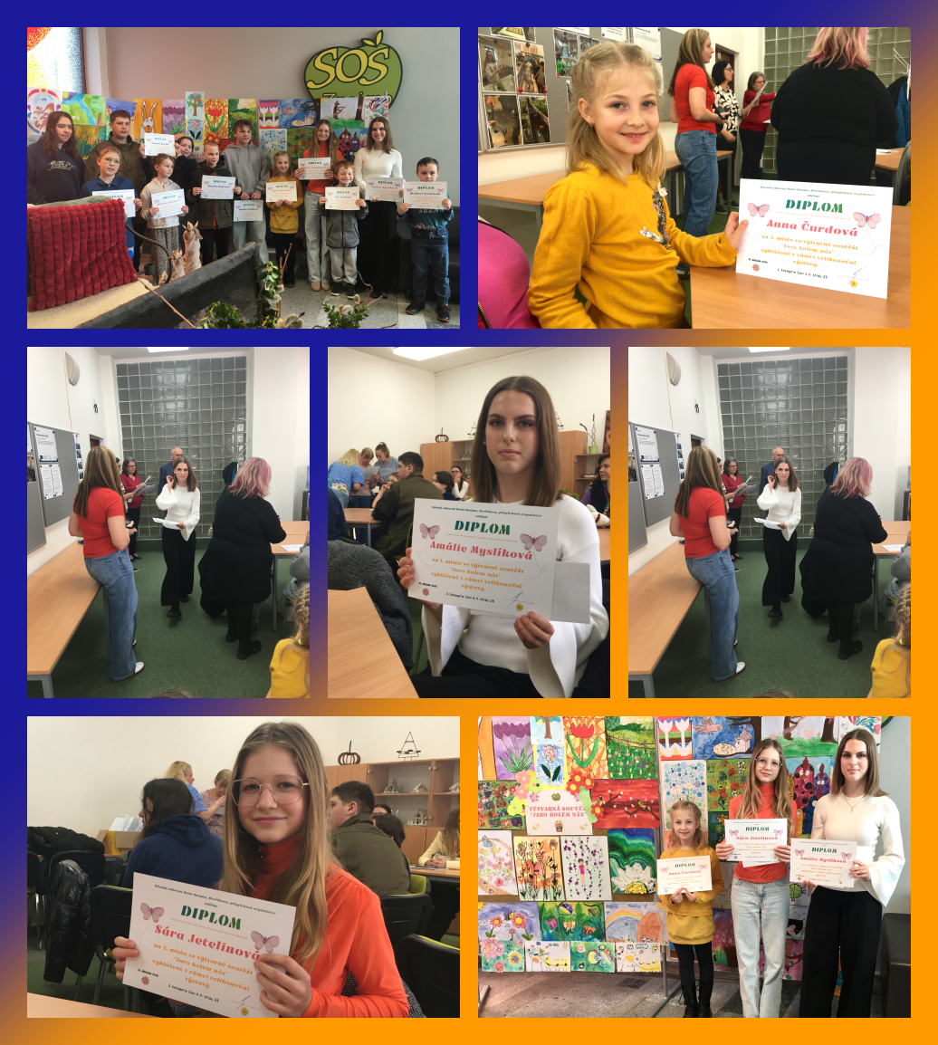 Velmi úspěšné byly naše žákyně také v soutěži „Jaro kolem nás“, kterou pořádá SOU Dvořákova Znojmo. V kategorii 1.–3. tříd se na 3. místě umístila Anna Čurdová z II.A. V kategorii 6.–9. tříd pak uspěly Amálie Myslíková z VIII.C, která se umístila na 1. místě. A z VIII.B Weronika Šilingerová s umístěním na 2. místě a Sára Jetelinová se svým 3. místem. Práce zaujaly porotu svou kreativitou a výtvarným zpracováním. Všechny soutěžní práce budou vystaveny v Domě umění na Masarykově náměstí, kde si je mohou prohlédnout návštěvníci z řad veřejnosti.