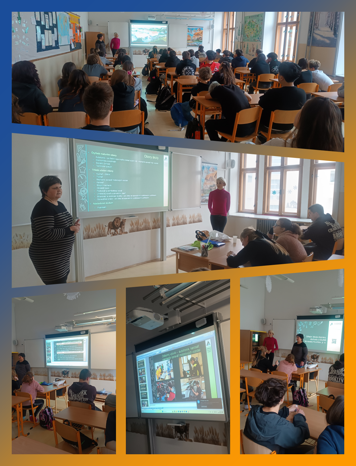 Odpovědi na uvedené otázky a mnohé další se dozvěděli v pátek 23. 1. 2026 žáci našich 9. ročníků na besedě se zástupci Střední školy dopravy, obchodu a služeb Moravský Krumlov.